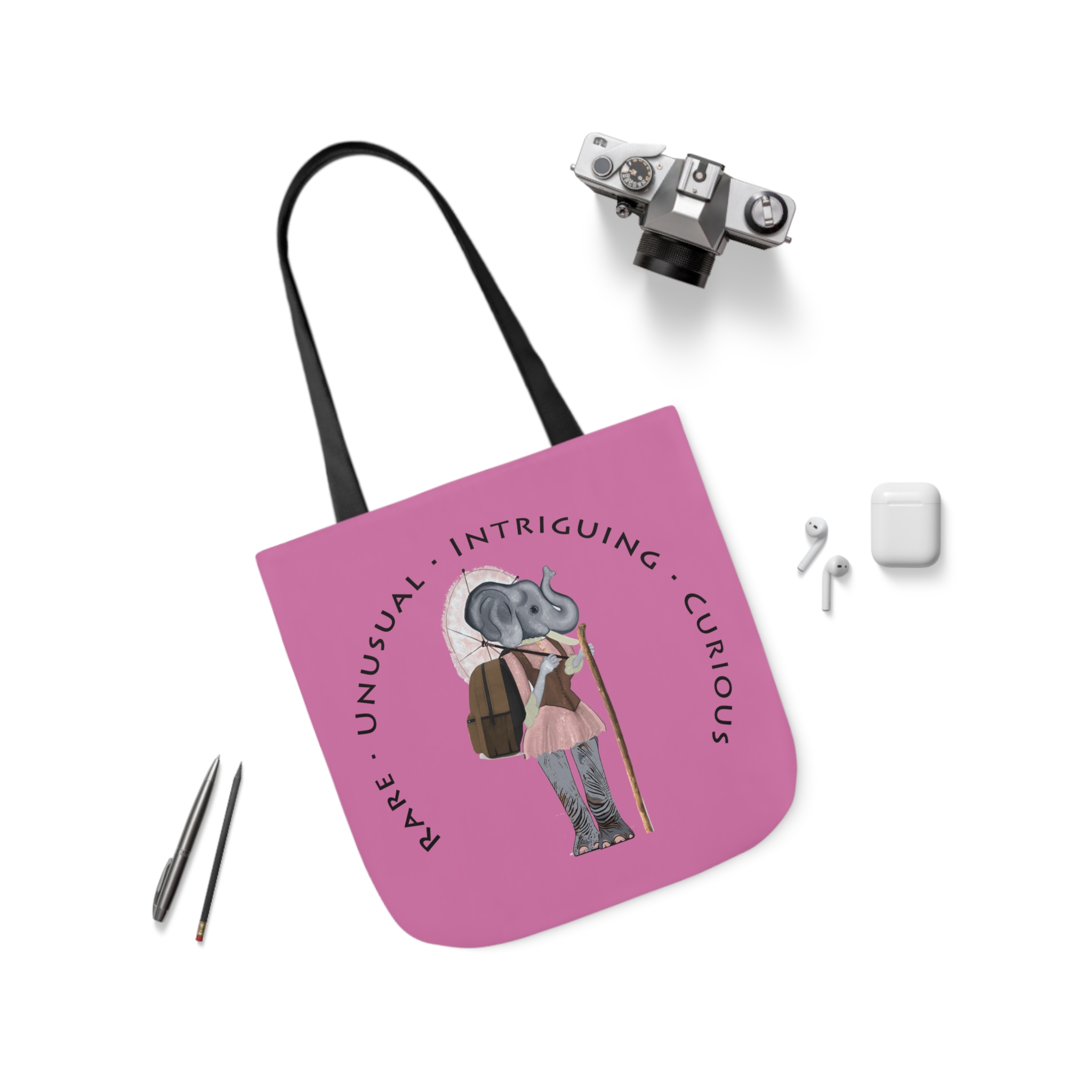 Lightweight and durable this polyester canvas tote bag does it all. The inside has a sleek, black lining and outside a comfortable strap. Choose any (or all) of the three sizes—for quick errands, shopping trips, hiking, and longer travels.