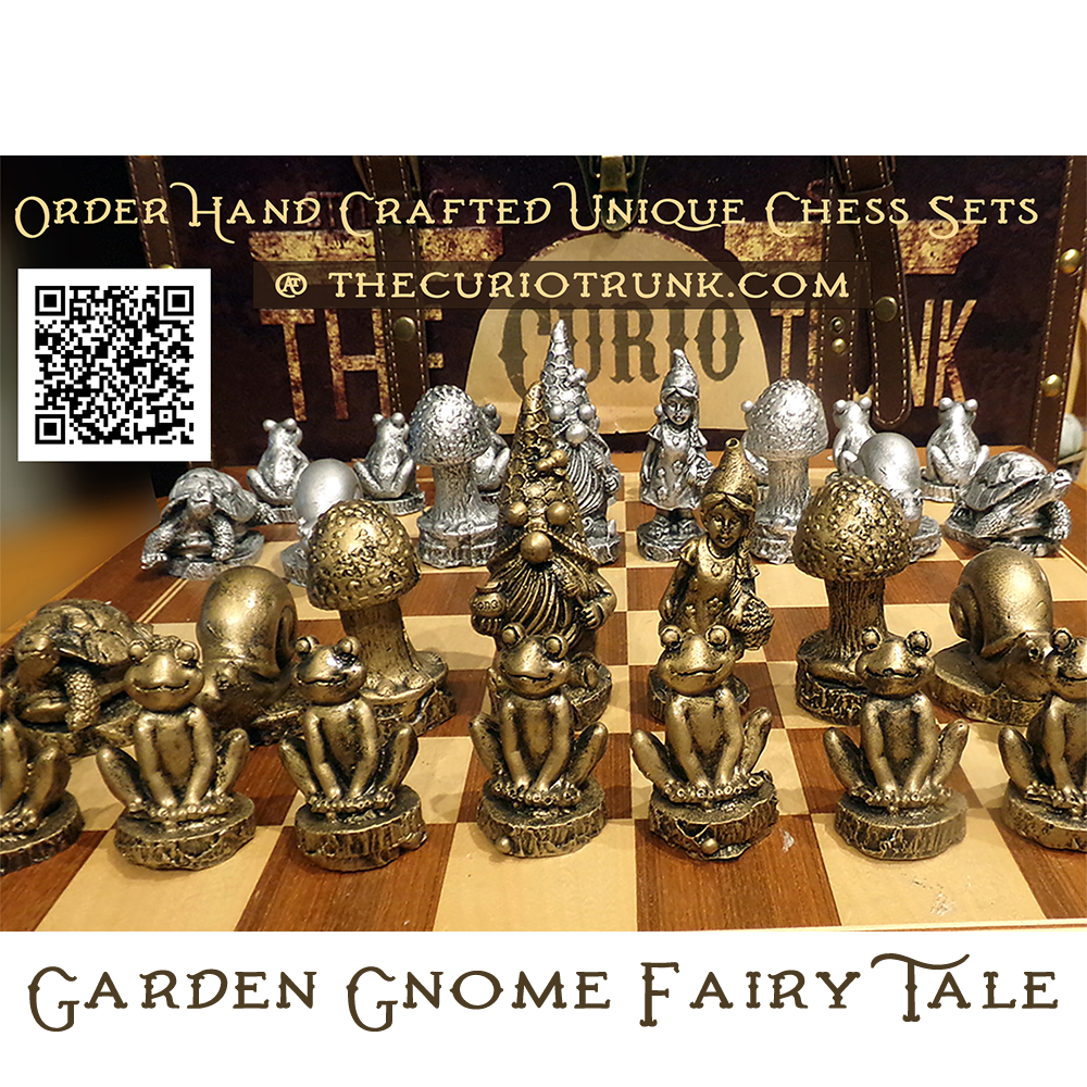 Out chess sets are Hand forged and custom painted by our skilled artisans. Made in the USA. The chess pieces are made from rock hard epoxy resin and can be packaged  in an optional custom painted wooden box.